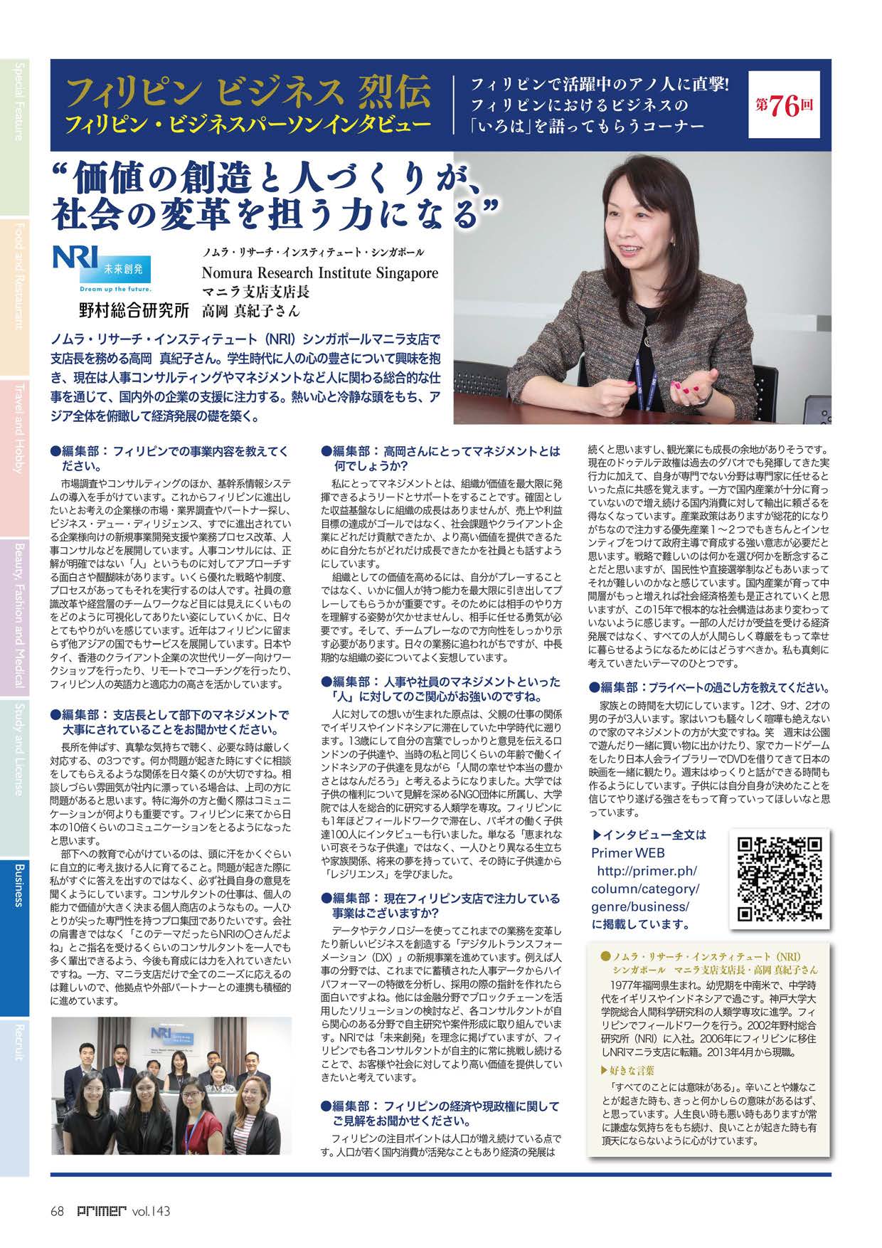 3) 【ビジネス烈伝】Nomura Research Institute Singapore マニラ支店支店長 高岡 真紀子さん