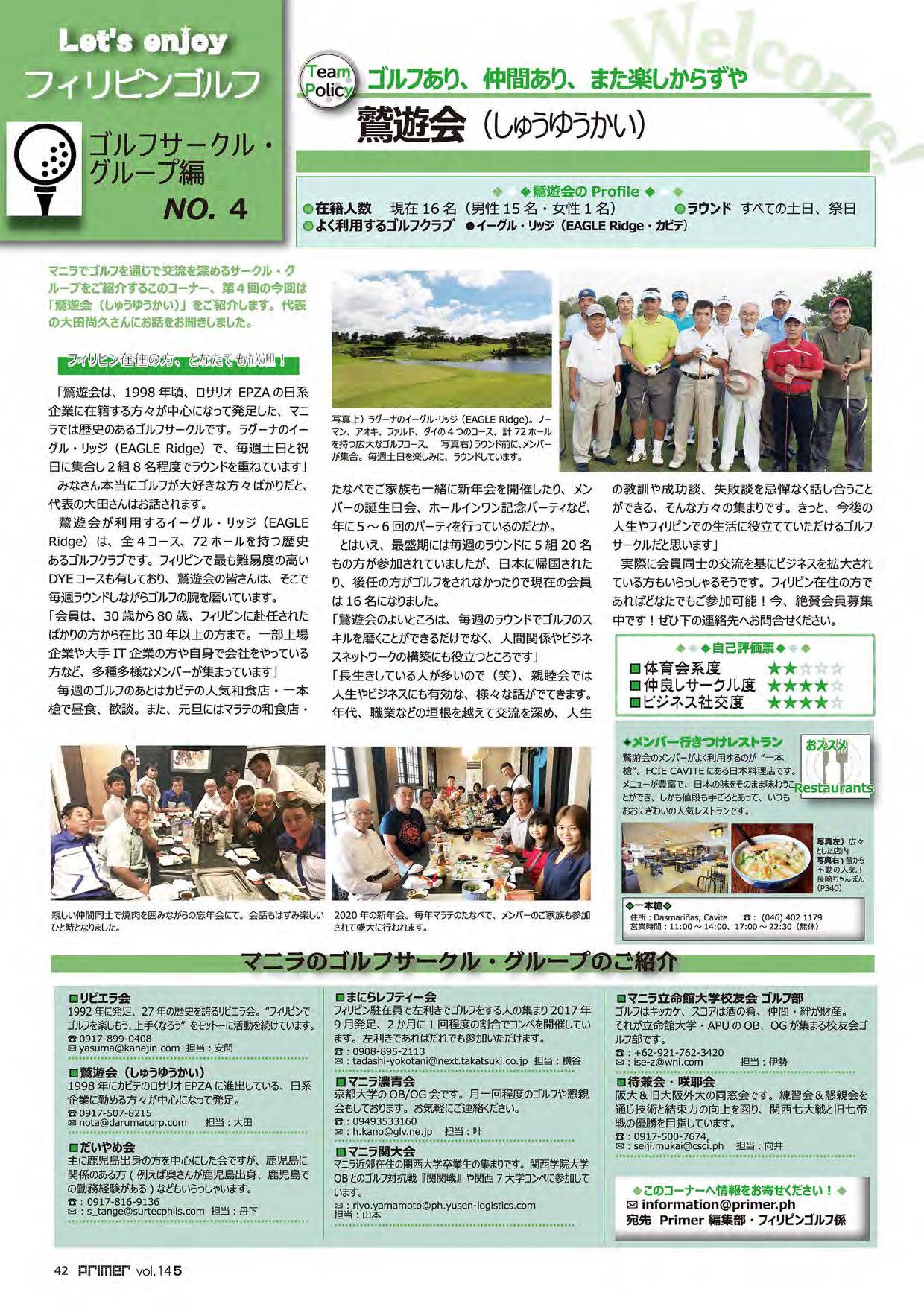 マニラでゴルフを通じで交流を深めるサークルグループをご紹介するこのコーナー、第4回の今回は「鷲遊会(しゅうゆうかい)」 をご紹介します。 代表の大田尚久さんにお話をお聞きしました。