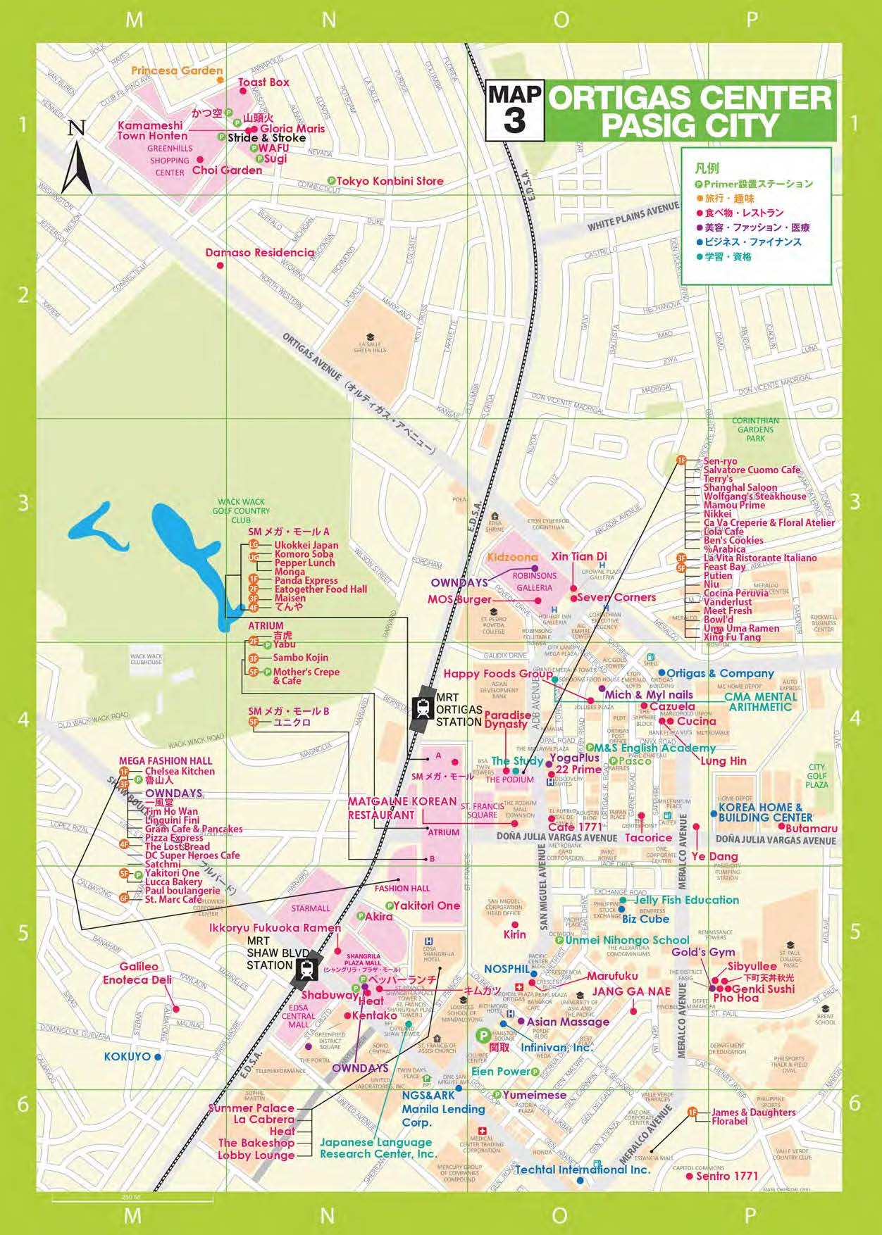 パシッグ、マンダルヨン、ケソン市の3市にまたがるセントラルビジネス地区。フィリピン証券取引所、フィリピン教育省、BDO本社などの重要な機関があるビジネスの中心地であり、ショッピングモールなどの娯楽も充実、日本企業も多くある。注目すべきは2018年にリニューアルされた高級モール•ポディウム。これからどんどん進化していくオルティガスから目が離せない