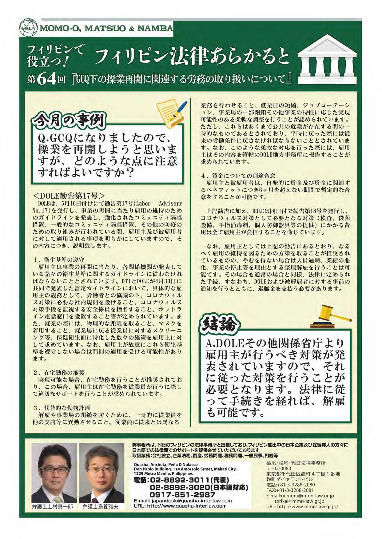 隔離措置にはMECQ、GCQ、MGCQなどいくつかの段階がありますが、各段階ではどんな活動が可能で、逆にどんな活動が規制されるのか、よくわからない方も多いと思います。