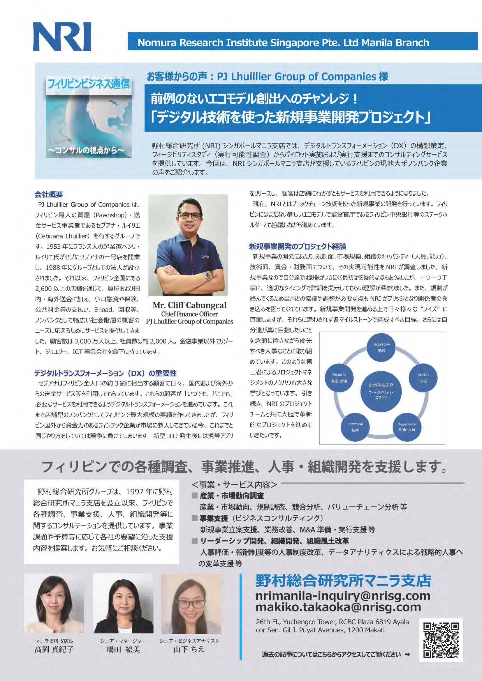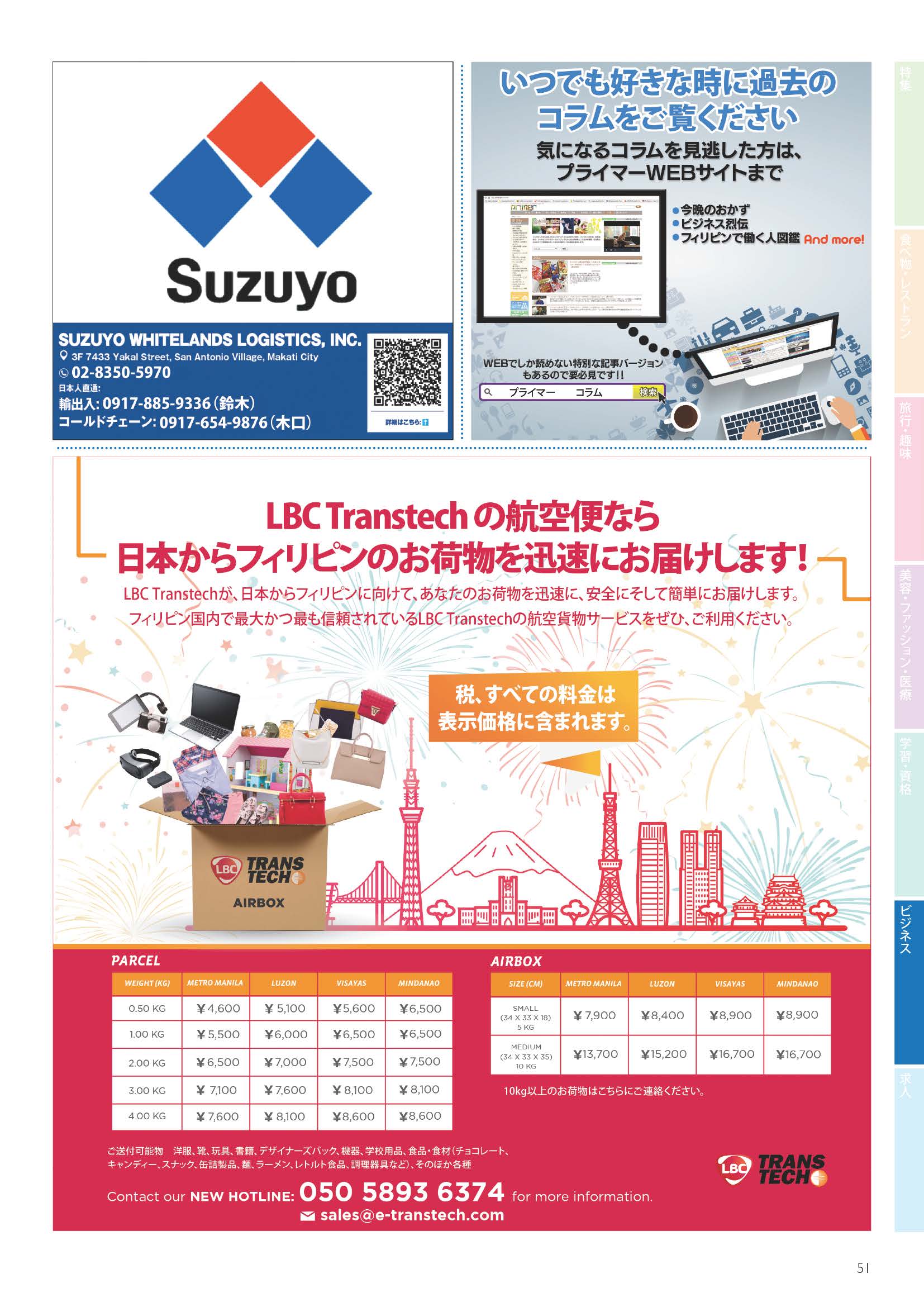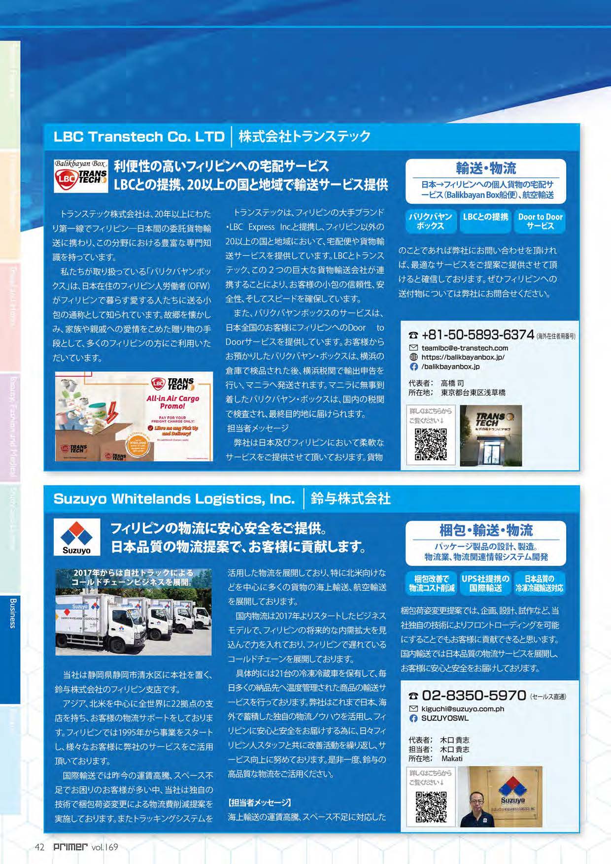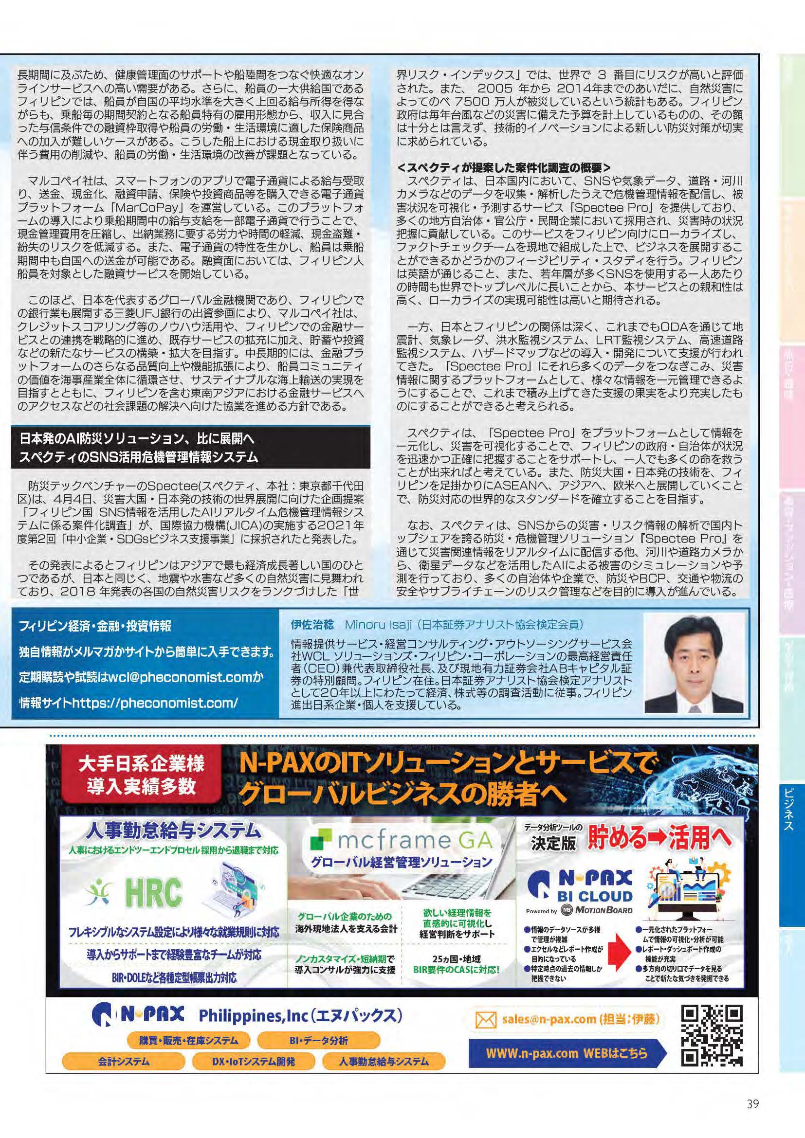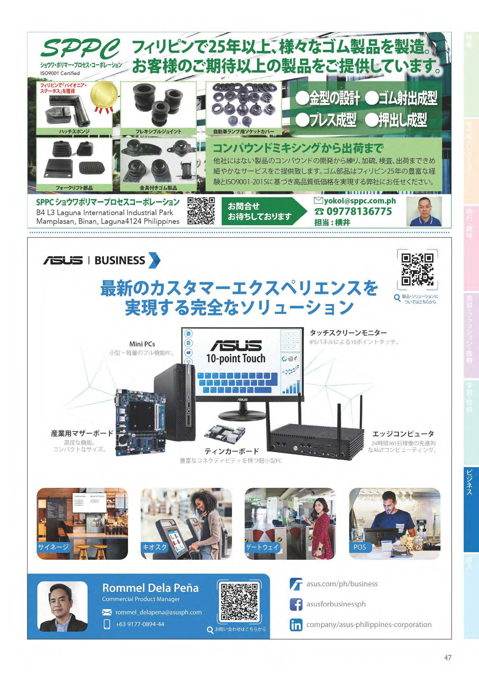 - 今回のビジネス特集は梱包・輸送・物流企業の日系企業に自社のサービスを紹介していただきます。ぜひ御社のフィリピンでのビジネス展開にお役立てください。またJETROコラムは「フィリピンのフィンテック産業動向について」です。