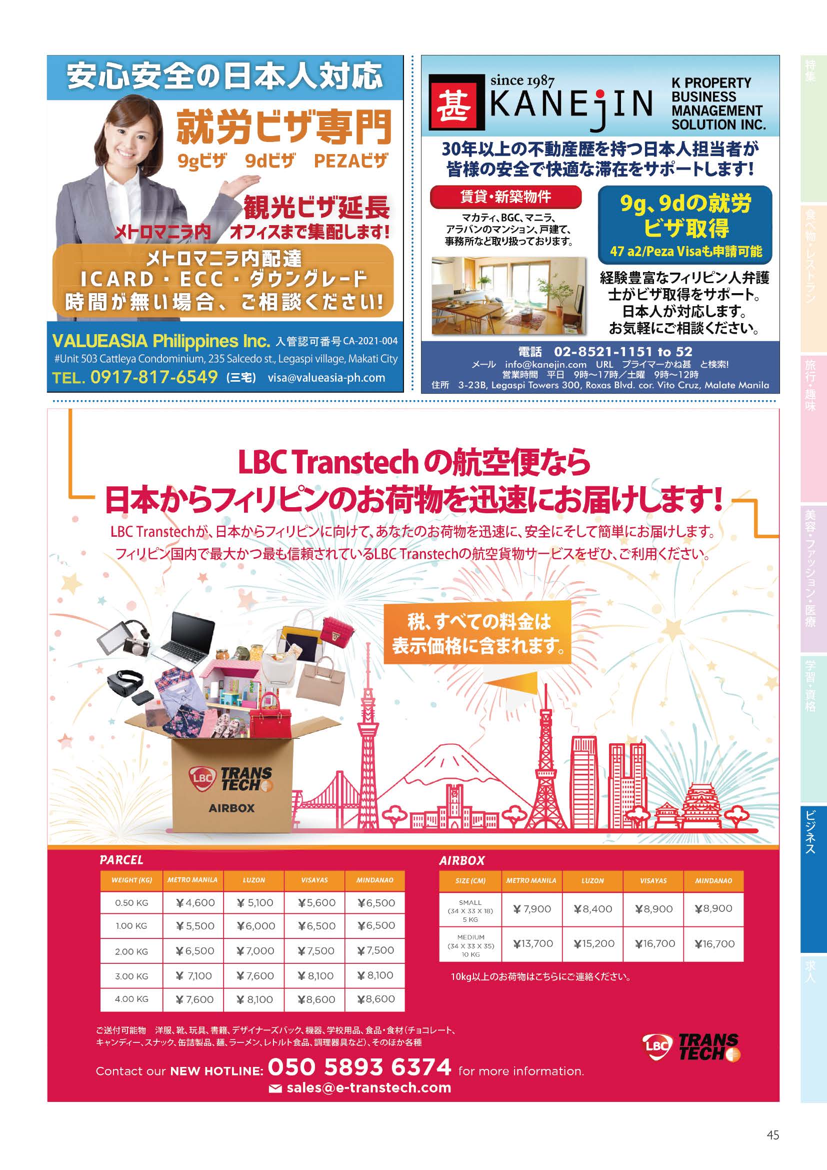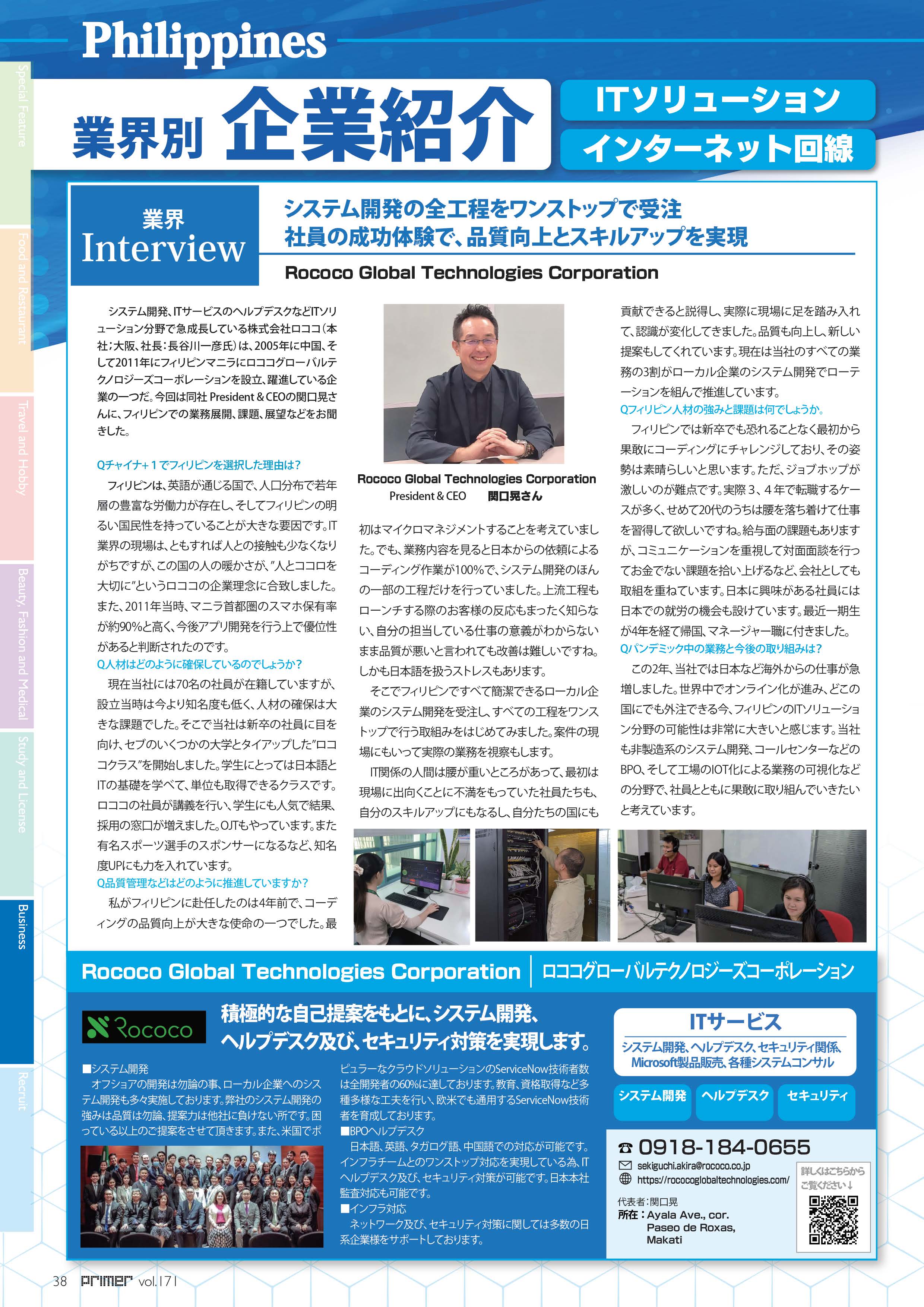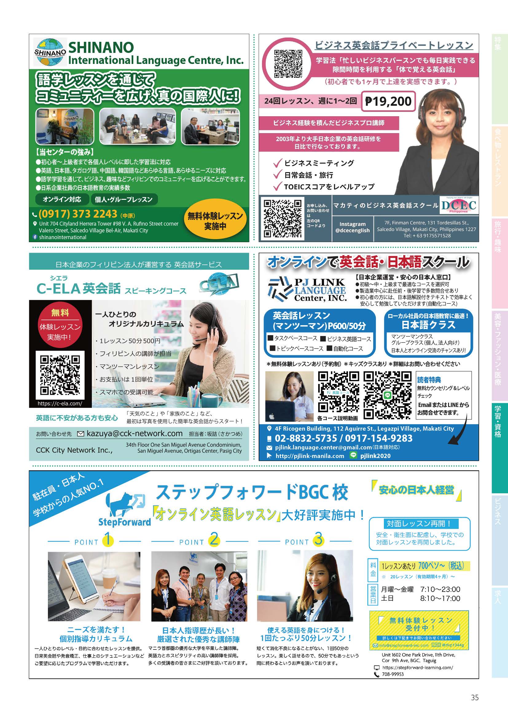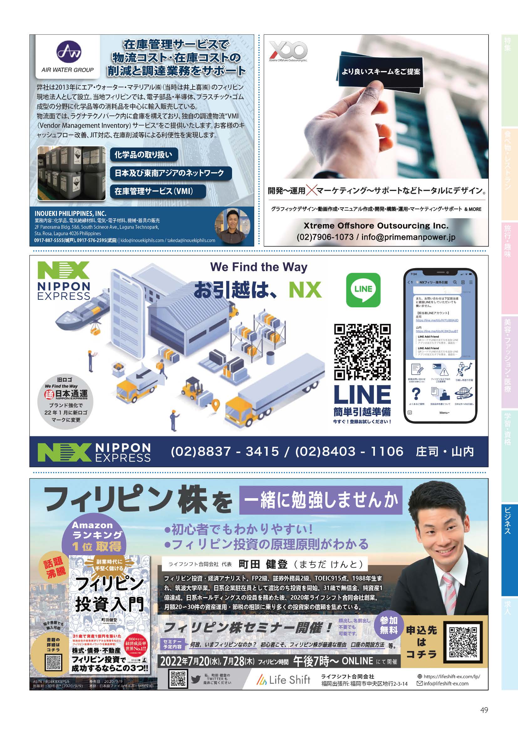 - ビジネス特集は、装いもあらたに【業界別企業紹介】として再スタート!本号ではITソリューション・インターネット回線とその周辺業界の注目情報を集めました。 またJETROのフィリピンビジネスコラムも必見です!