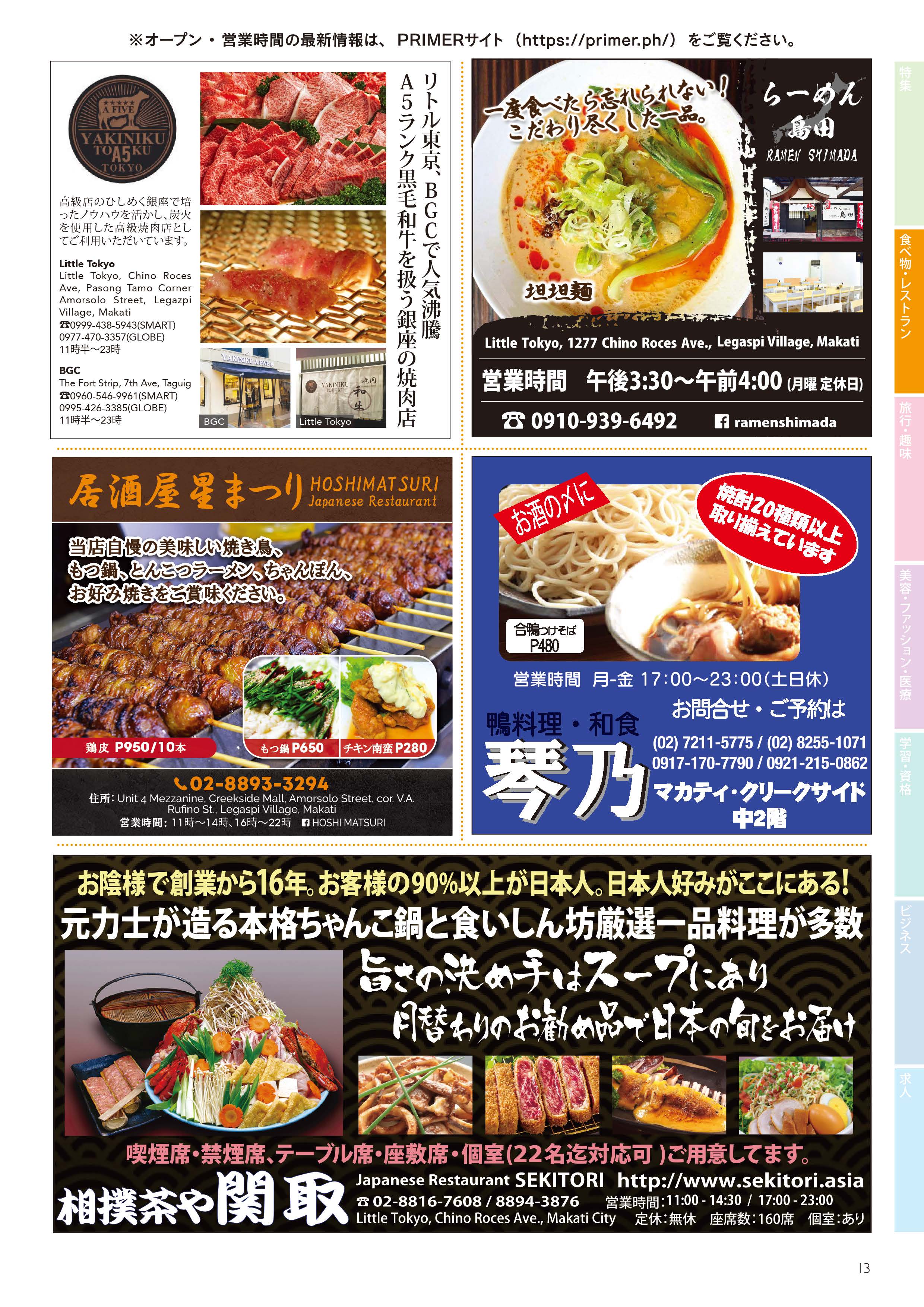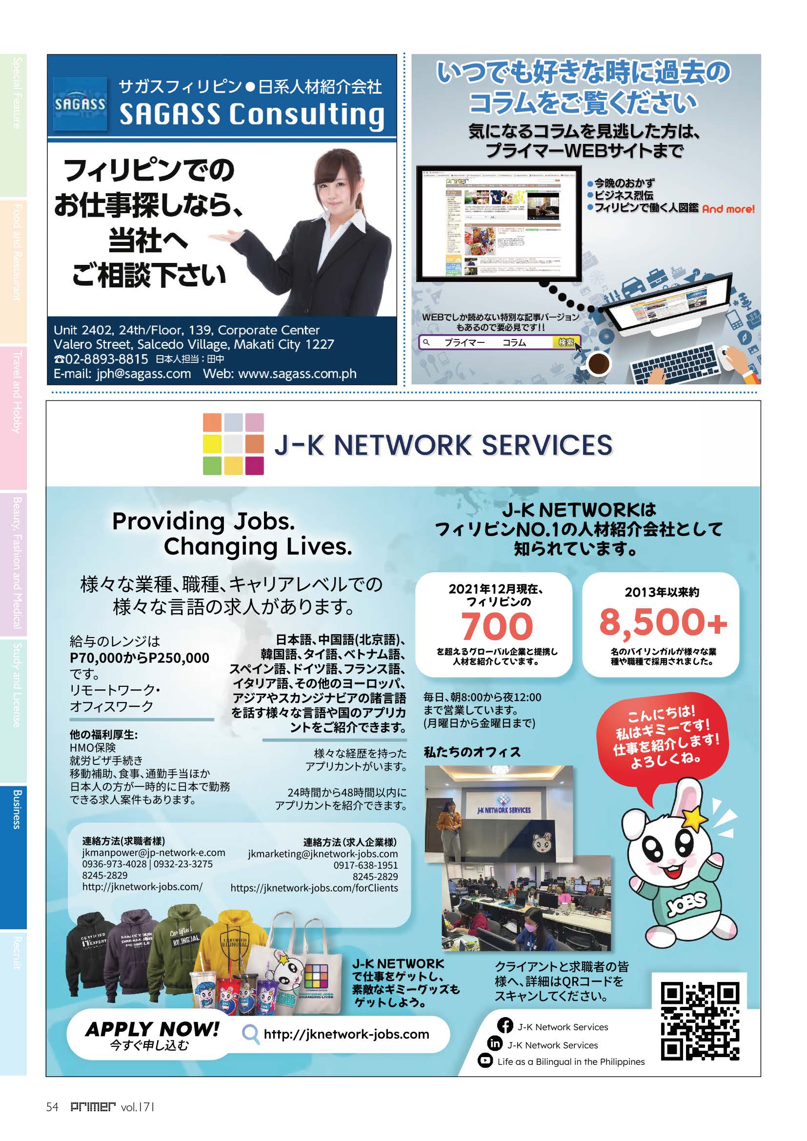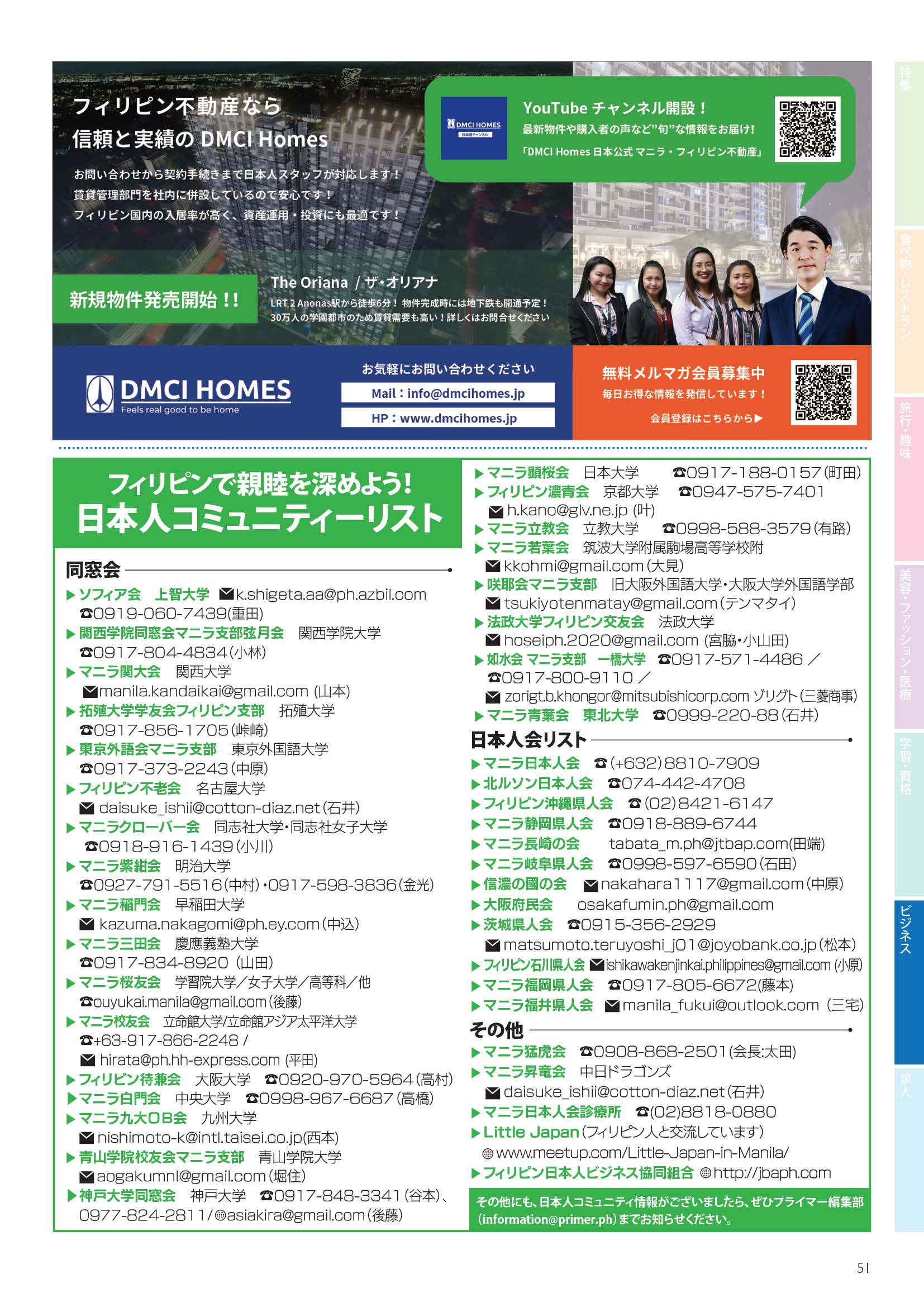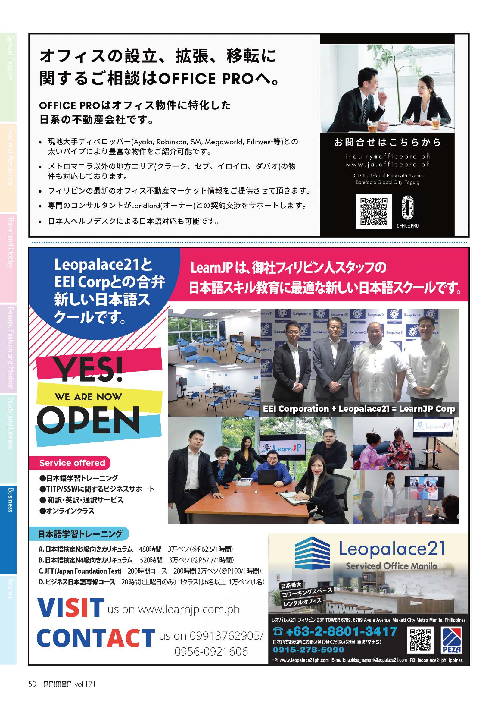 - ビジネス特集は、装いもあらたに【業界別企業紹介】として再スタート!本号ではITソリューション・インターネット回線とその周辺業界の注目情報を集めました。 またJETROのフィリピンビジネスコラムも必見です!