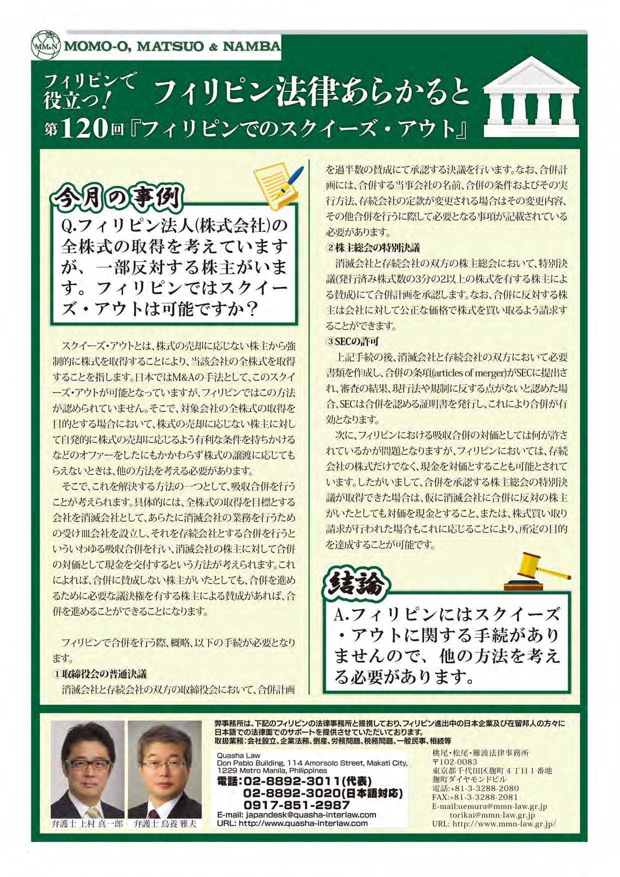 3)【フィリピンで役立つ!フィリピン法律あらかると】『フィリピンでのスクイーズ·アウト』