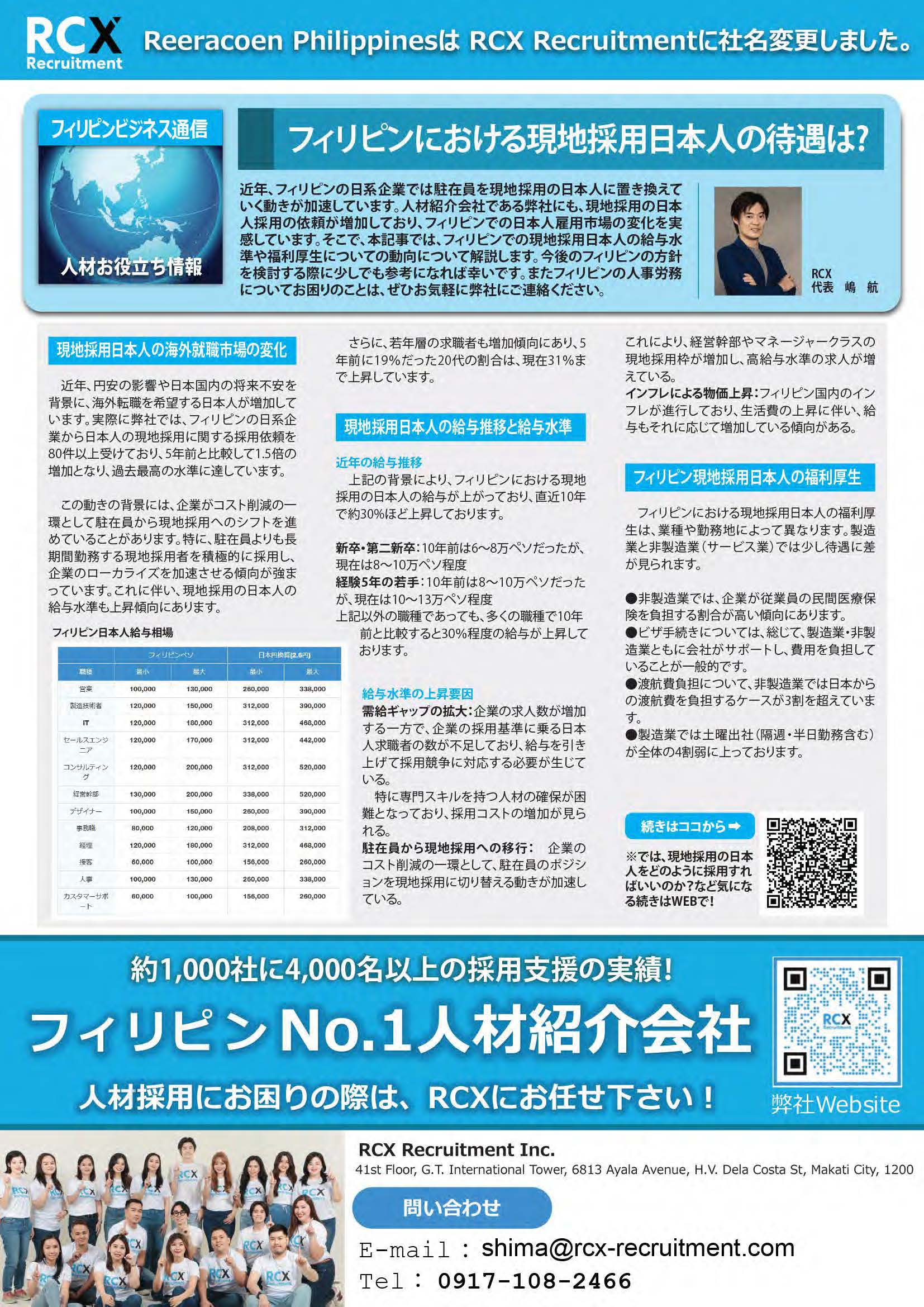 4)【コラム】フィリピンビジネス通信・人材お役立ち情報「フィリピンにおける現地採用日本人の待遇は?」