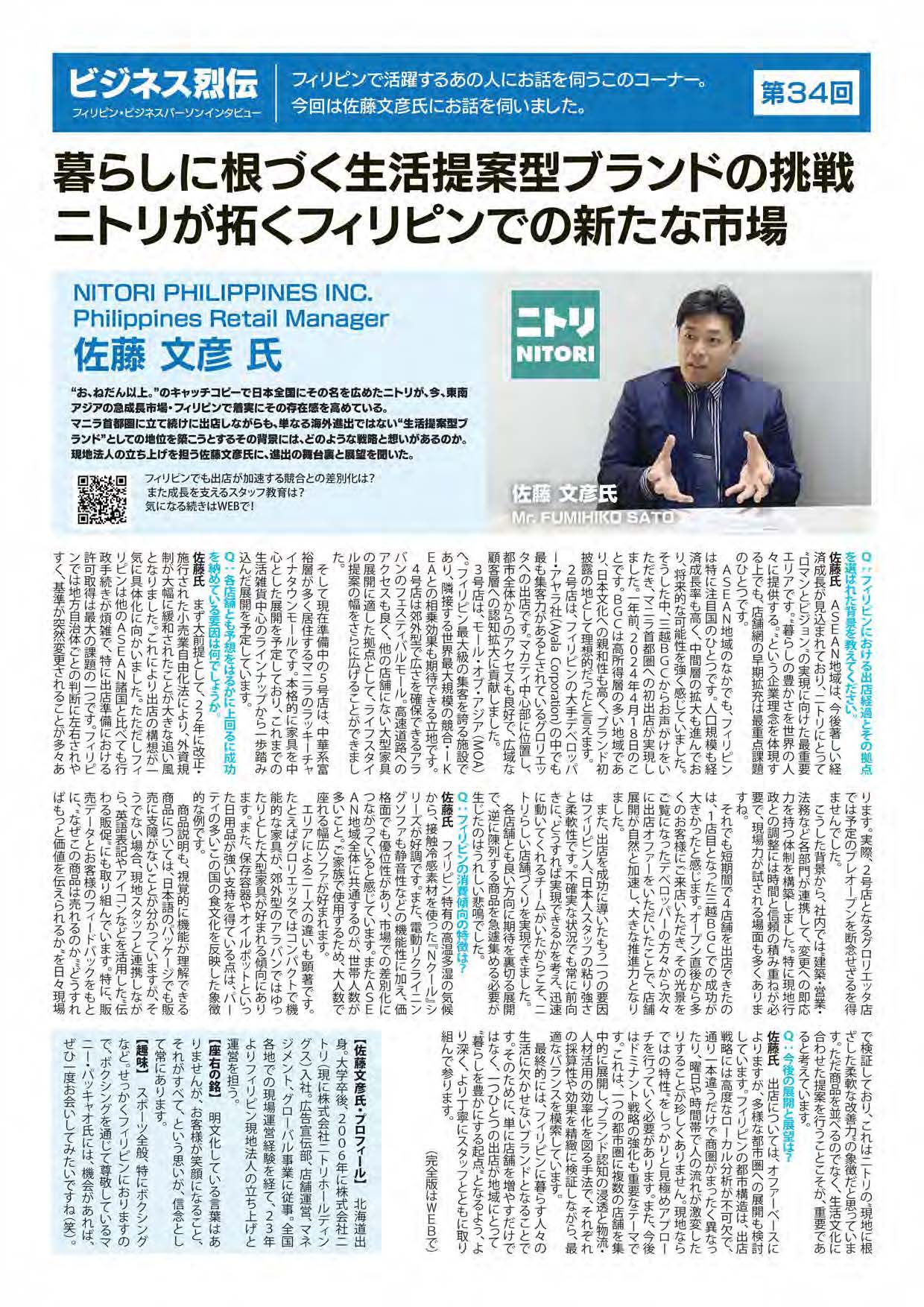 NITORI PHILIPPINES INC. Philippines Retail Manager 佐藤 文彦 氏