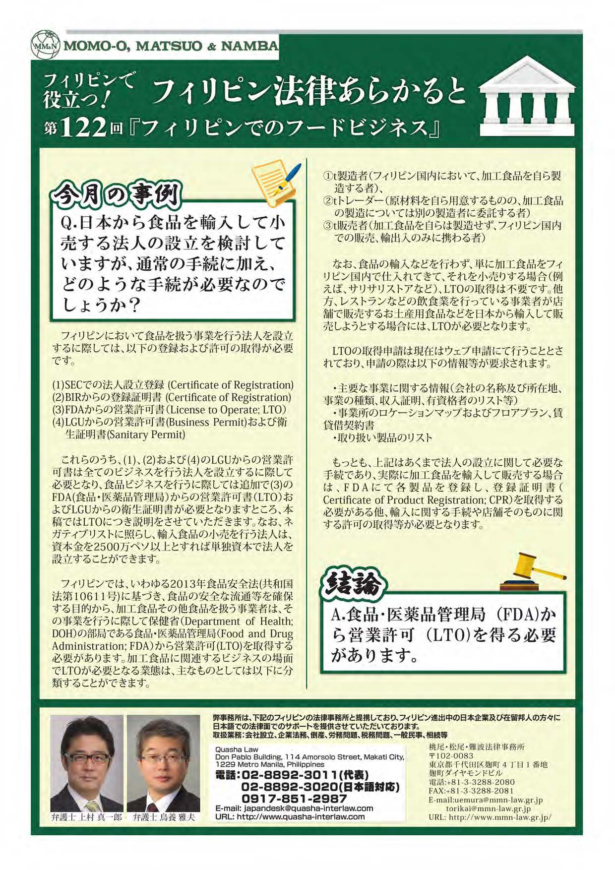3)【フィリピンで役立つ!フィリピン法律あらかると】『フィリピンでのフードビジネス』