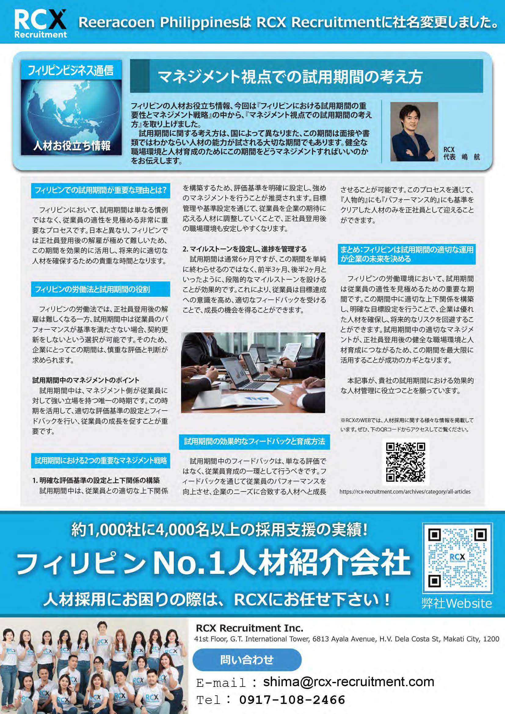 4)【コラム】フィリピンビジネス通信・人材お役立ち情報「マネジメント視点での試用期間の考え方」