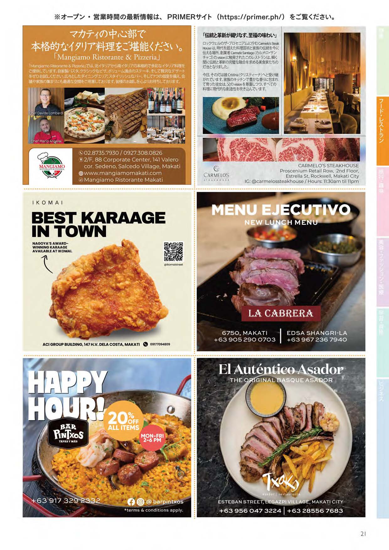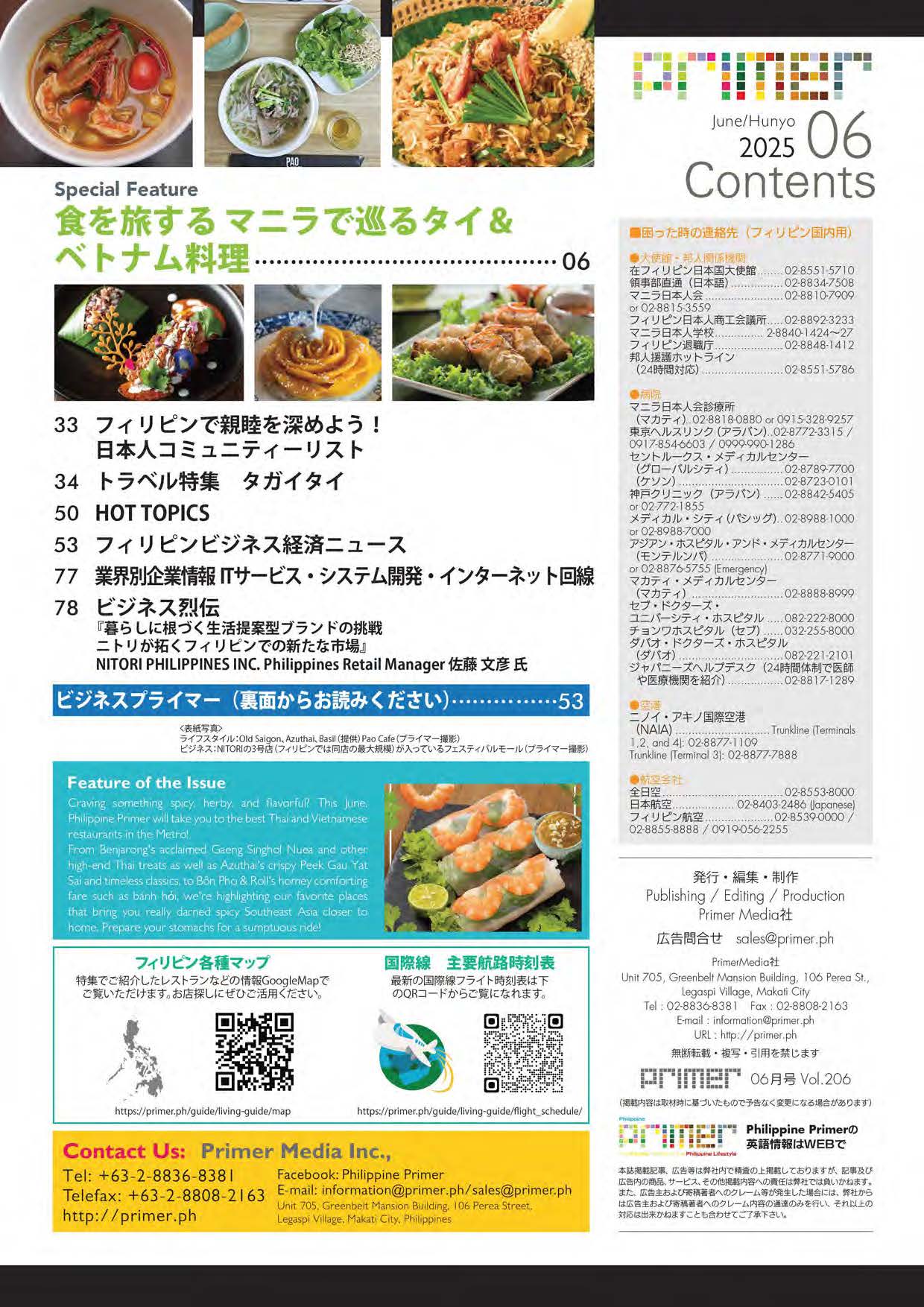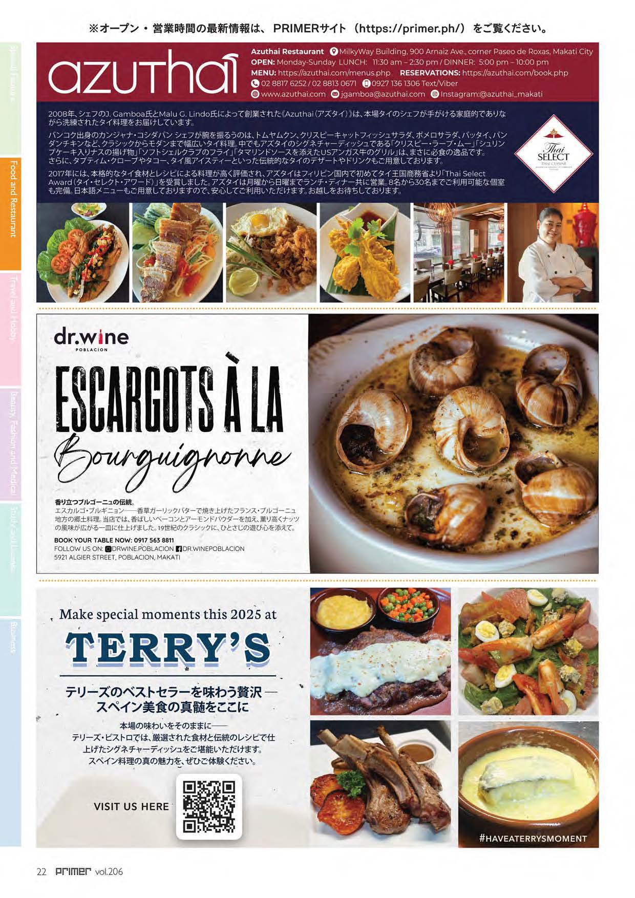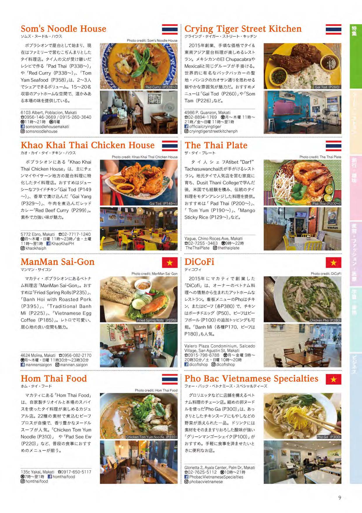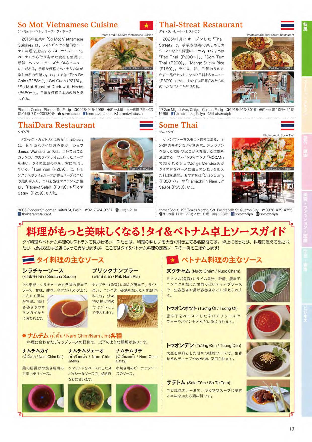 - 最近マニラにも、本国出身のシェフが腕をふるう本格派から、フィリピンの味覚に寄り添ったアレンジを提供する店舗まで、幅広く楽しめるタイ&ベトナム料理店が登場。マカティやBGCなどの人気エリアを中心に、接待にも使えるレストラン、気軽に通えるカジュアル店などをprimerが調査しました。タイ商務省の厳しい審査を通過したレストランに与えられる「タイ·セレクト」認定店にも注目! さあ、マニラで楽しむタイ&ベトナム料理の味めぐりへ!