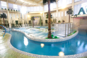 ハイドロセラピープール、ホット&コールドジャグジー、ラッププール、ウォーターマッサージなどの様々な種類のプールがあり、大人も子どもも楽しめる。