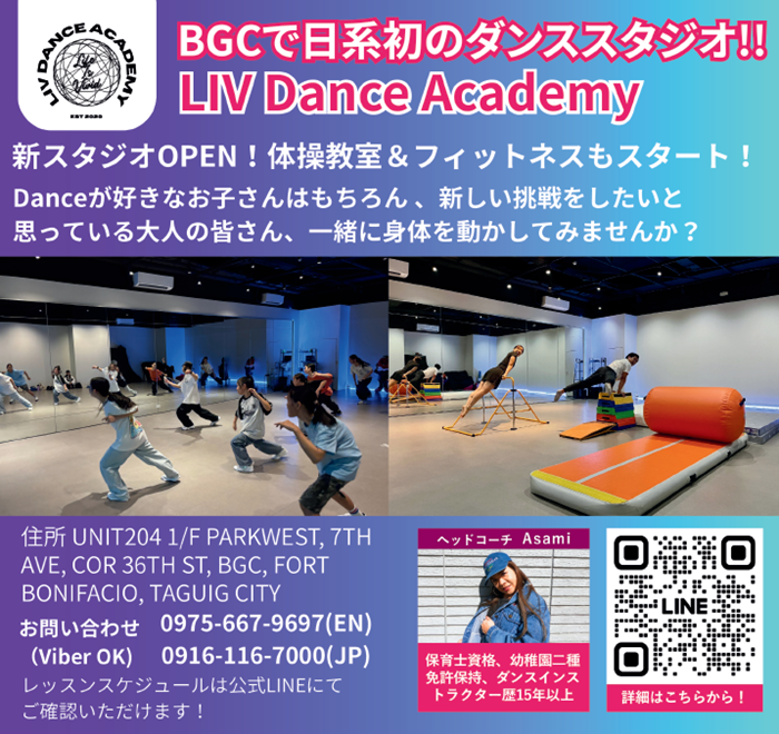 Danceが好きなお子さんはもちろん、フィリピンで身体を動かす機会が少なくなった方や、大人だから出来ないと思っている方、健康的な身体づくりに興味がある方、一緒に身体を動かしてみませんか?