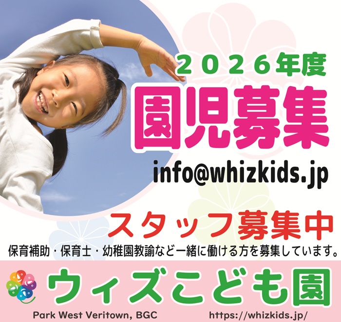 楽しく体を動かすことと、日本語の保育を大切にしている日系幼児教育施設。「幼児期に体を動かすことは、脳を活性化させ、学力の向上や前向きな気持ちのコントロールに大きく影響します。」と代表の小野さん。「また、幼児期に母語である日本語の力をつけることは、自信を培うだけでなく、大切な人との信頼関係を築くことに繋がります。」毎日のプログラムには、運動と英語があり、曜日ごとのプログラムには、ワーク・創作・音楽がある。日本の季節に応じた毎月のイベントに加えて、BGC内の農園で農業体験、HIPHOPダンス教室、J1リーグ湘南ベルマーレによるサッカー教室(4月より再開)なども実施している。