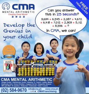 フィリピン各地に展開を続ける、台湾発祥のそろばん塾。両手でそろばんを操作する「two-hand and four-finger」メソッドを利用し、感覚を司る右脳と、理屈を司る左脳を同時に使うことで、一般的な方法よりも効率よくそろばんを覚えられると言われている。