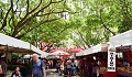 毎週土曜日の午前から開催されるサルセドマーケット。多国籍の料理や食品のお店が並びます。