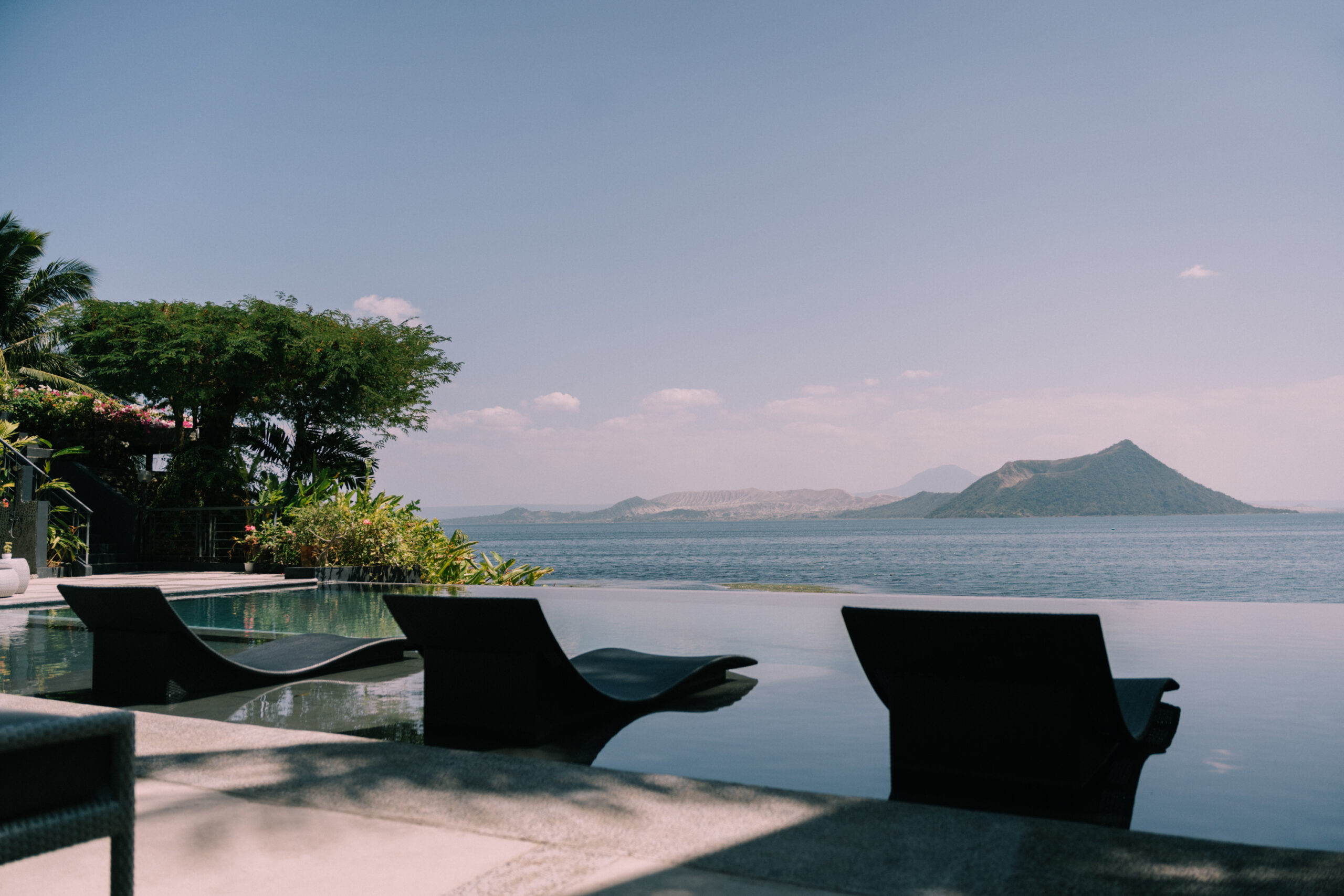 タール湖と火山を一望するパノラマビュー、湖から吹き抜ける心地よい風、静かに佇む庭園が、さらなる安らぎを添えています。